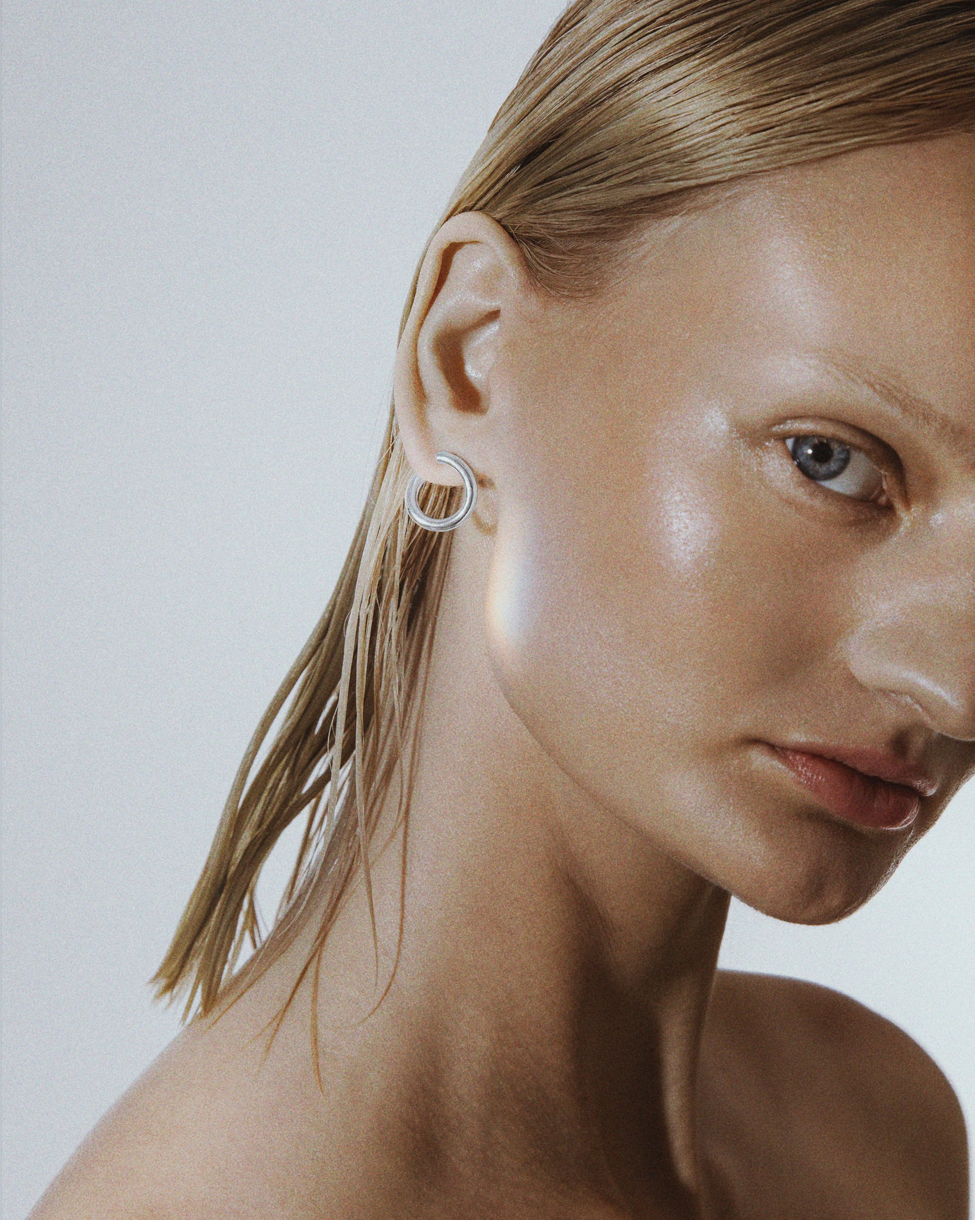 Handmade hoop earrings crafted from recycled sterling silver. Designed with a subtle twisted detail that gently wraps around the earlobe. A signature piece from the Lunar Collection, designed to be worn on both side of the ears for a unique, sculptural change in design - which offers you two earrings in one.